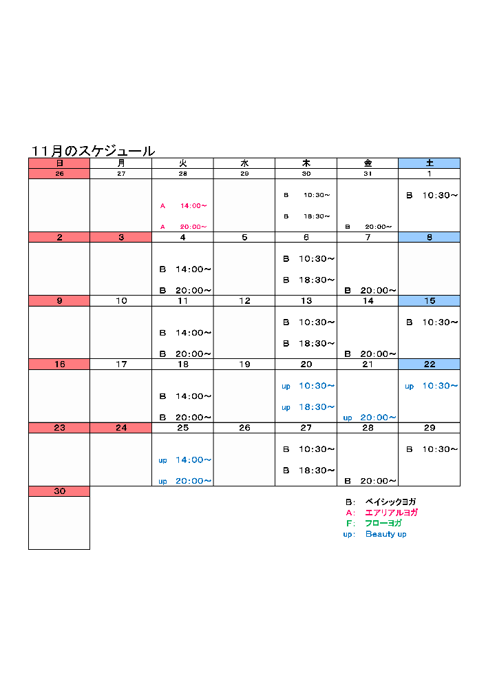 翌月の予定表は月の中頃にUP予定です