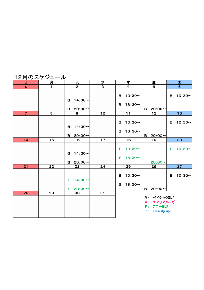翌月の予定表は前月の中頃にUP!します